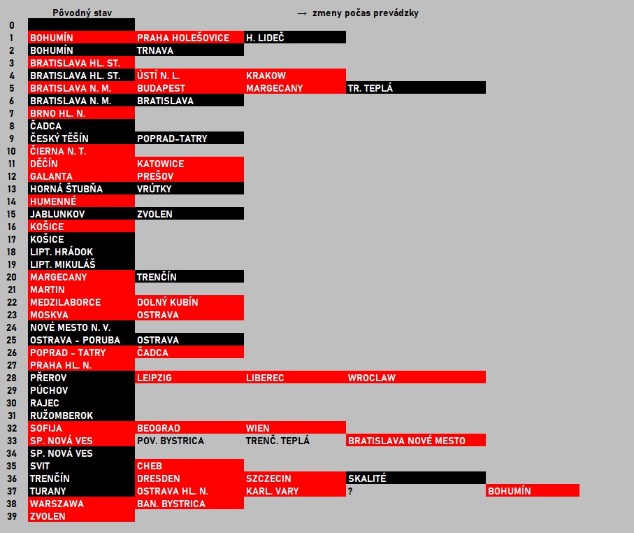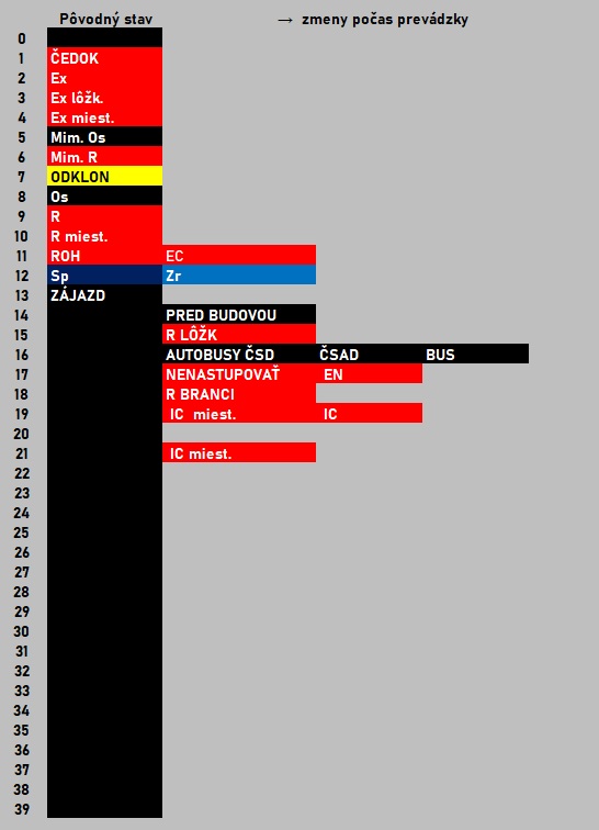 Informácie o obsahu teleindikačných listových jednotiek neboli spracované na základe oficiálnej dokumentácie železničnej stanice, ale na základe pozorovania prevádzky systému, resp. prostredníctvom analýzy dochovaných teleindikačných listových jednotiek v stave z konca prevádzky. Z uvedeného dôvodu údaje nemusia byť kompletné, prípadne môžu obsahovať chyby alebo nepresnosti.